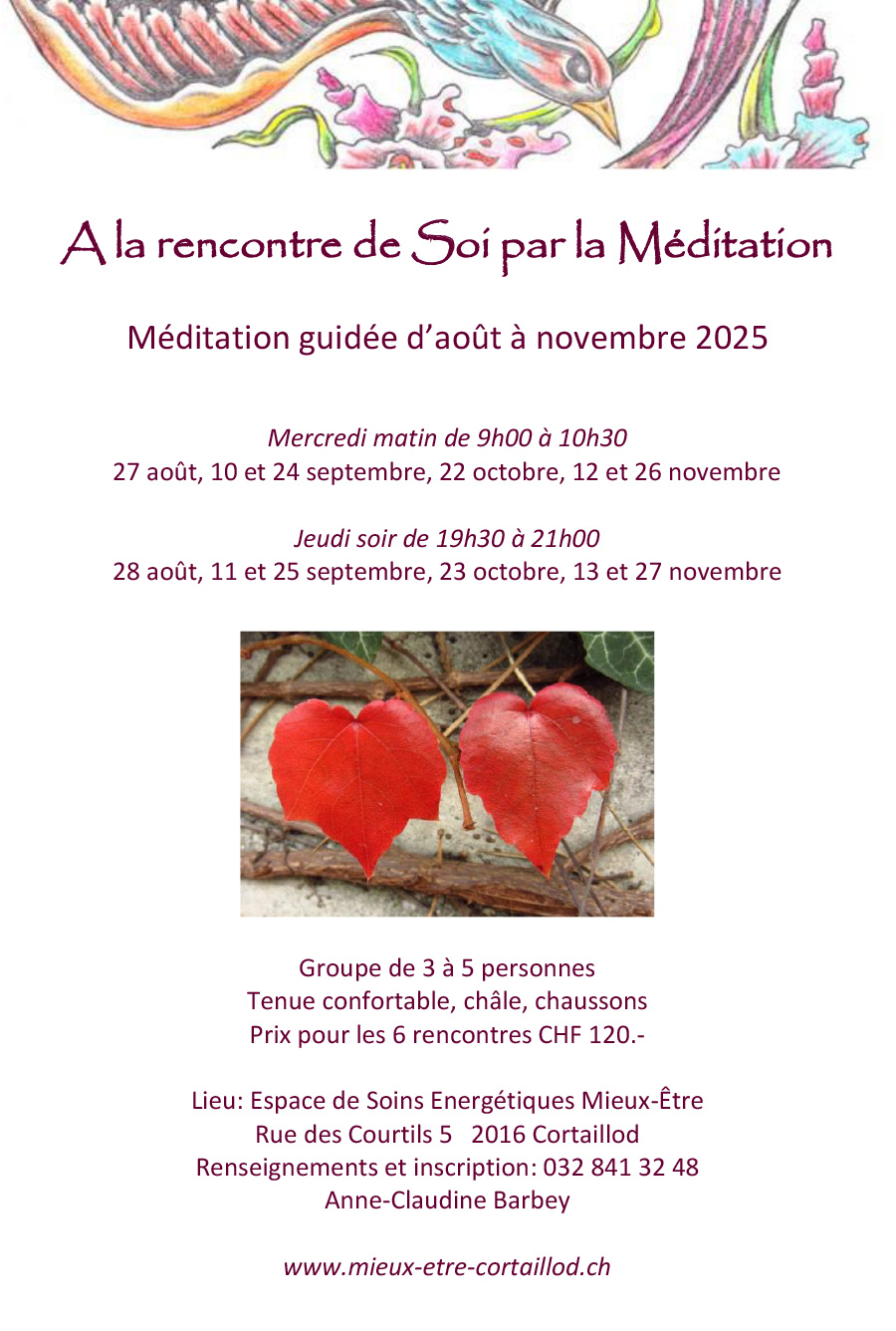 Accompagné par ma voix, sur un fond de musique, vous proposez à votre corps, à votre cœur et à votre conscience un autre état vibratoire.